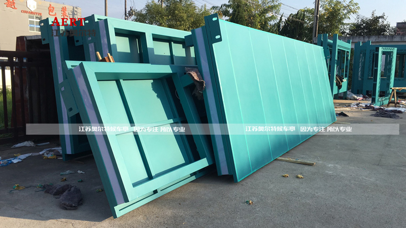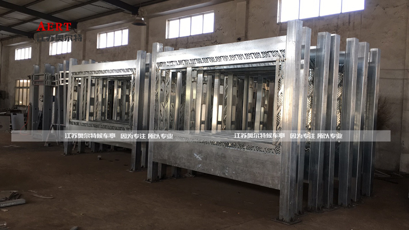 可以隨時安裝的候車亭頂棚。已經(jīng)裝車好的候車亭,正在準(zhǔn)備出發(fā)!每一批候車亭發(fā)貨前都是進(jìn)行試安裝!