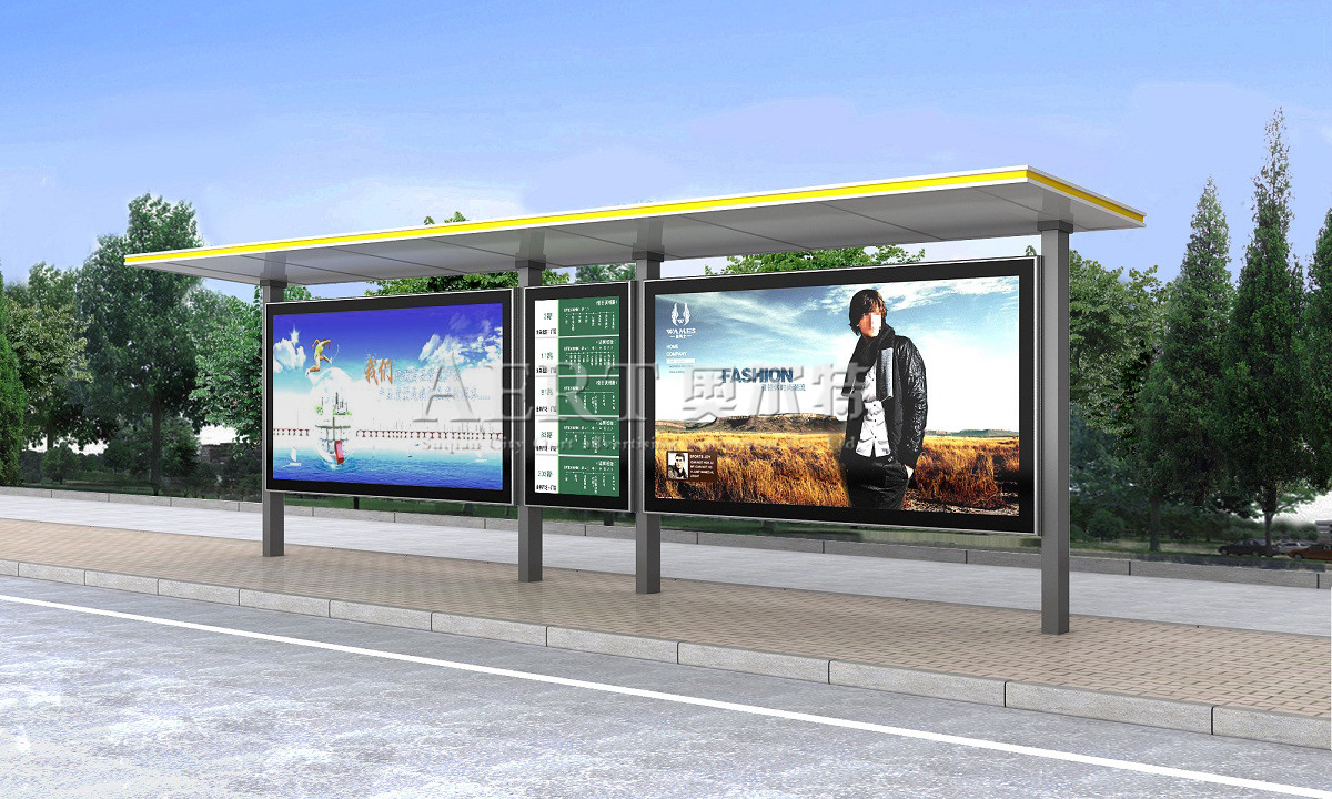 一般公交候車亭主要由支柱、頂棚和隔板組成,也有用廣告燈箱更換隔板的。不銹鋼板或鍍鋅板是公交候車亭最主要的材料,也有采用鋁型材的,但比較少見。其他主要材料還有PC耐力板,用在公交候車亭燈箱兩面,就是廣告畫面外面透明的那層板;鋁塑板,用在頂棚的下面,就是抬頭看到的那部分;鍍鋅板,一般用在頂棚上面和燈箱的主框。