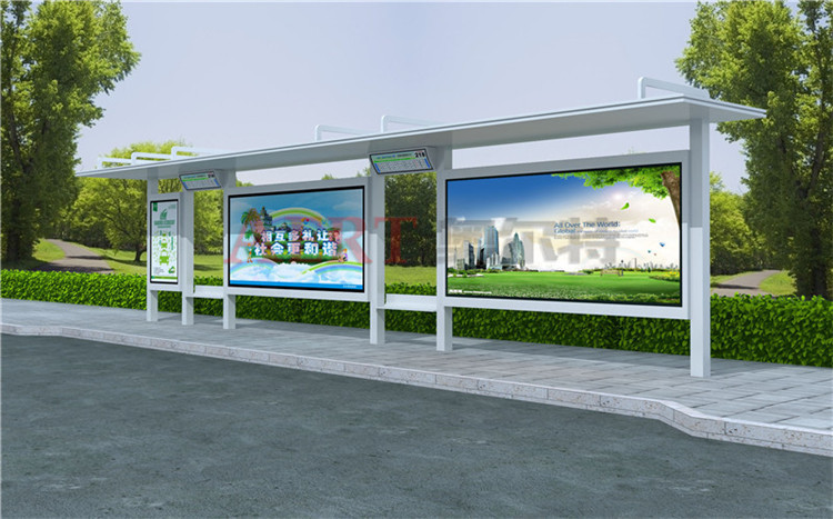 不銹鋼板或鍍鋅板是公交候車亭最主要的材料,也有采用鋁型材的,但比較少見。其他主要材料還有PC耐力板、鋼化玻璃,用在燈箱兩面,就是廣告畫面外面透明的那層板;鋁塑板,用在頂棚的下面,就是抬頭看到的那部分;鍍鋅板,一般用在公交候車亭頂棚上面和燈箱的主框。