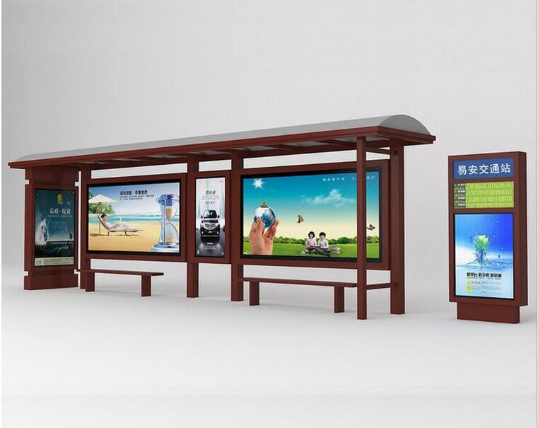 候車亭常規(guī)尺寸:整高為2.6-2.8米,頂棚寬約1.6-2米,長約5-8米。單體燈箱1800mm*3600mm;廣告畫面1500mm*3500mm;頂棚1500mm*4500mm;高度2700mm--2800mm。
