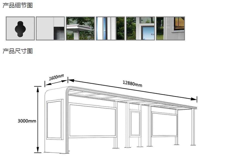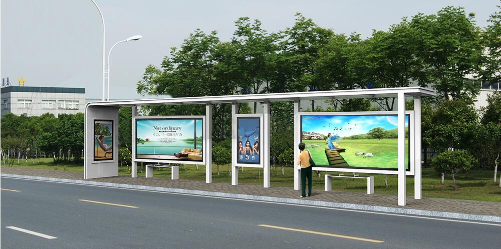 主要的材料為不銹鋼板或鍍鋅板制作候車亭,也有采用鋁型材的,但比較少見。其他主要材料還有PC耐力板、鋼化玻璃,用在廣告燈箱兩面;鋁塑板,用在頂棚的下面,就是抬頭看到的那部分;鍍鋅板,一般用在頂棚上面和燈箱的主框。