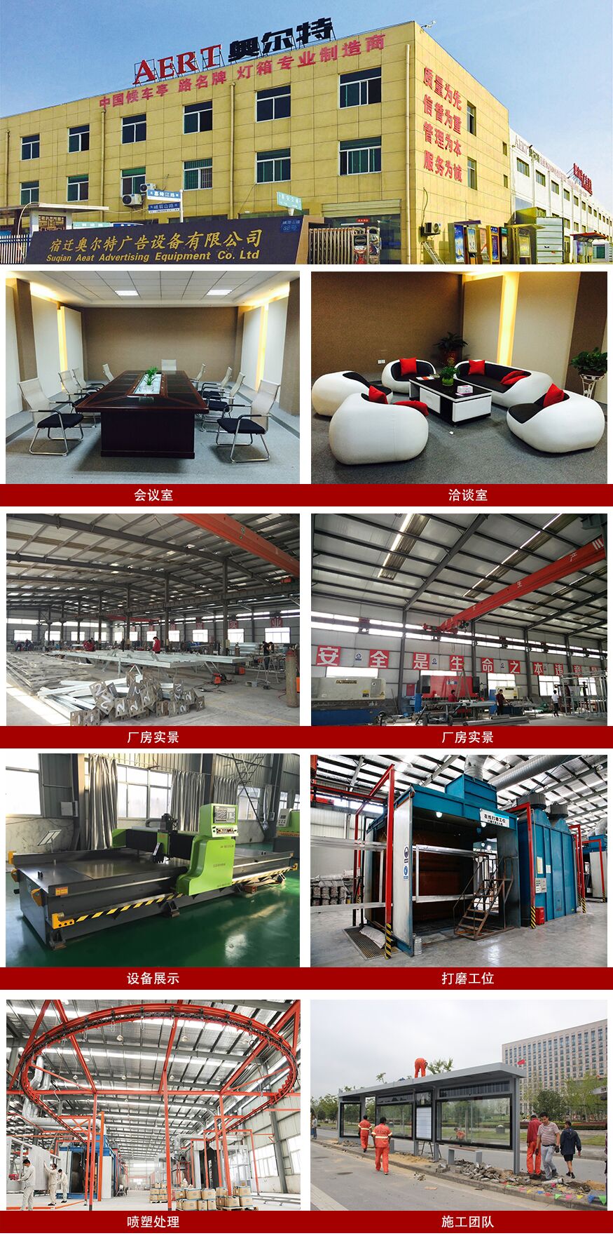 公司擁有一流的設(shè)計(jì)、生產(chǎn)能力,有專業(yè)產(chǎn)品設(shè)計(jì)、工藝研發(fā)工程師5人,現(xiàn)有生產(chǎn)面積10000平方米,員工150余人,已經(jīng)形成以公交候車亭為主線的專業(yè)團(tuán)隊(duì)。公司先后引進(jìn)了一批最新型的數(shù)控折彎?rùn)C(jī)、數(shù)控剪板機(jī)、數(shù)控等離子切割機(jī)、數(shù)控沖床等加工設(shè)備和噴塑流水線,滿足了不同規(guī)格的鋼結(jié)構(gòu)、不銹鋼和鋁型材加工工藝和質(zhì)量的需求。