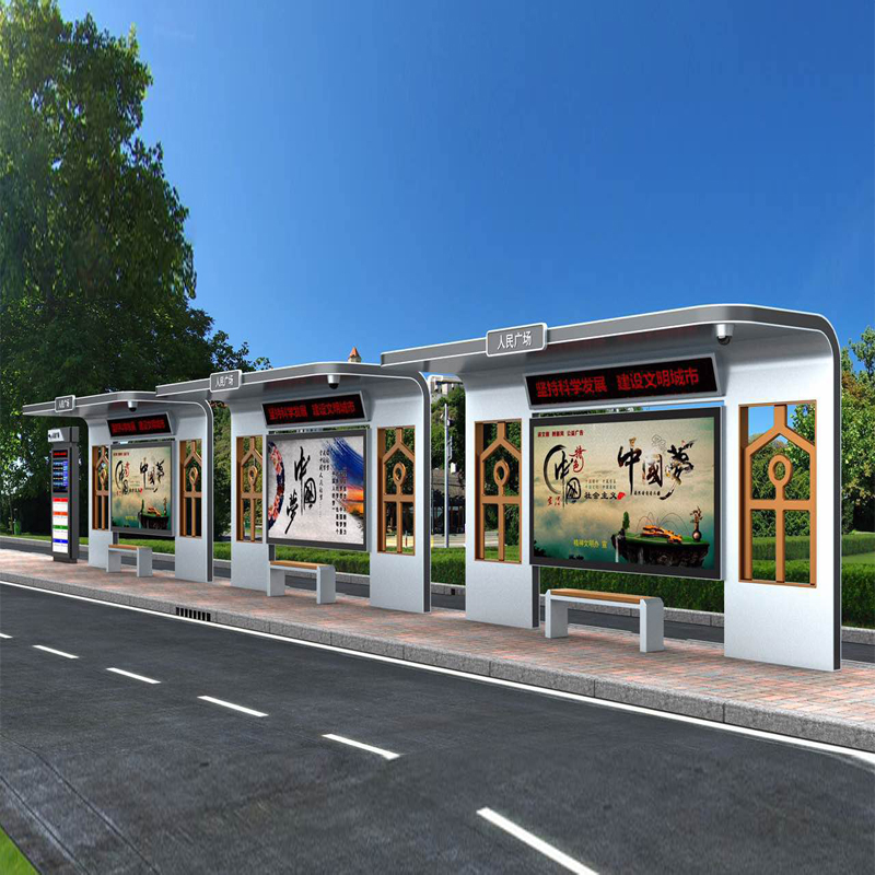 隨著時代的進步,招呼站不再像以前,僅僅是公交?康墓δ埽瑫r兼具著照明、廣告宣傳、工藝宣傳等功能;同時也更加的智能化,一般可以配備智能公交系統(tǒng)、照明系統(tǒng)、跑馬燈LED、智能換畫滾動系統(tǒng)等。