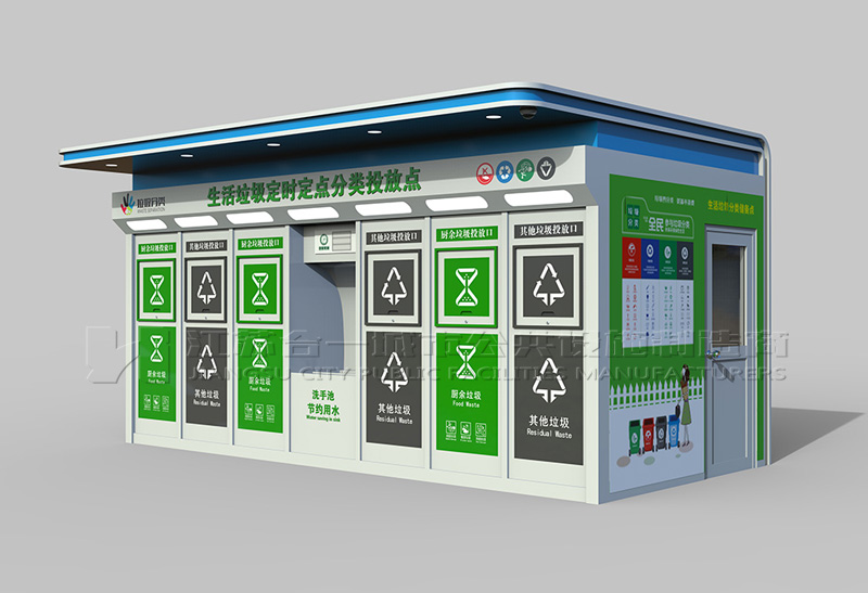 1. 每個智慧垃圾分類點擺一套五分類智慧垃圾分類箱專做可回收垃圾和有害垃圾回收,由運營商負責收集處理。